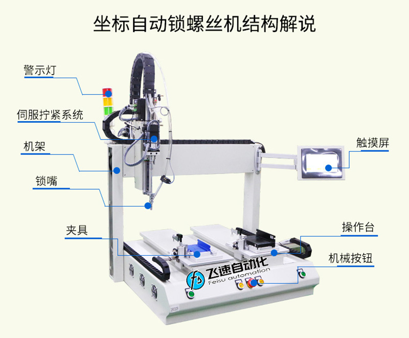 - 產品簡介:雙頭雙工位坐標式螺絲機,可以實現兩個產品一起送鎖,每個產品擰緊螺絲只需要2-3秒即可,助力企業輕松實現高效生產。